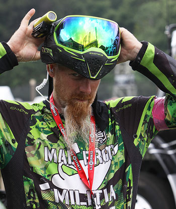 From their home base at Lone Wolf Paintball to events like Skirmish Invasion of Normandy in Pennsylvania, Living Legends in Illinois, Hawaiian Legends (which they probably won’t drive the bus to), the Monster Game at Hell Survivors, the Grand Finale at Wayne’s World in Florida, Supergame in Oregon and East Coast Supergame in Maryland and Dreaded Legends at Black Ops Paintball in Myrtle Beach, South Carolina, William “Mad Frog” Crook and his family and crew represent the Brigade Program well! Wearing Empire EVS goggles and running everything from Empire Vanquishes to Axes and even the new Syx marker, you know the Mad Frog Militia when you see them thanks to their signature green FrogoFlage camo jerseys!